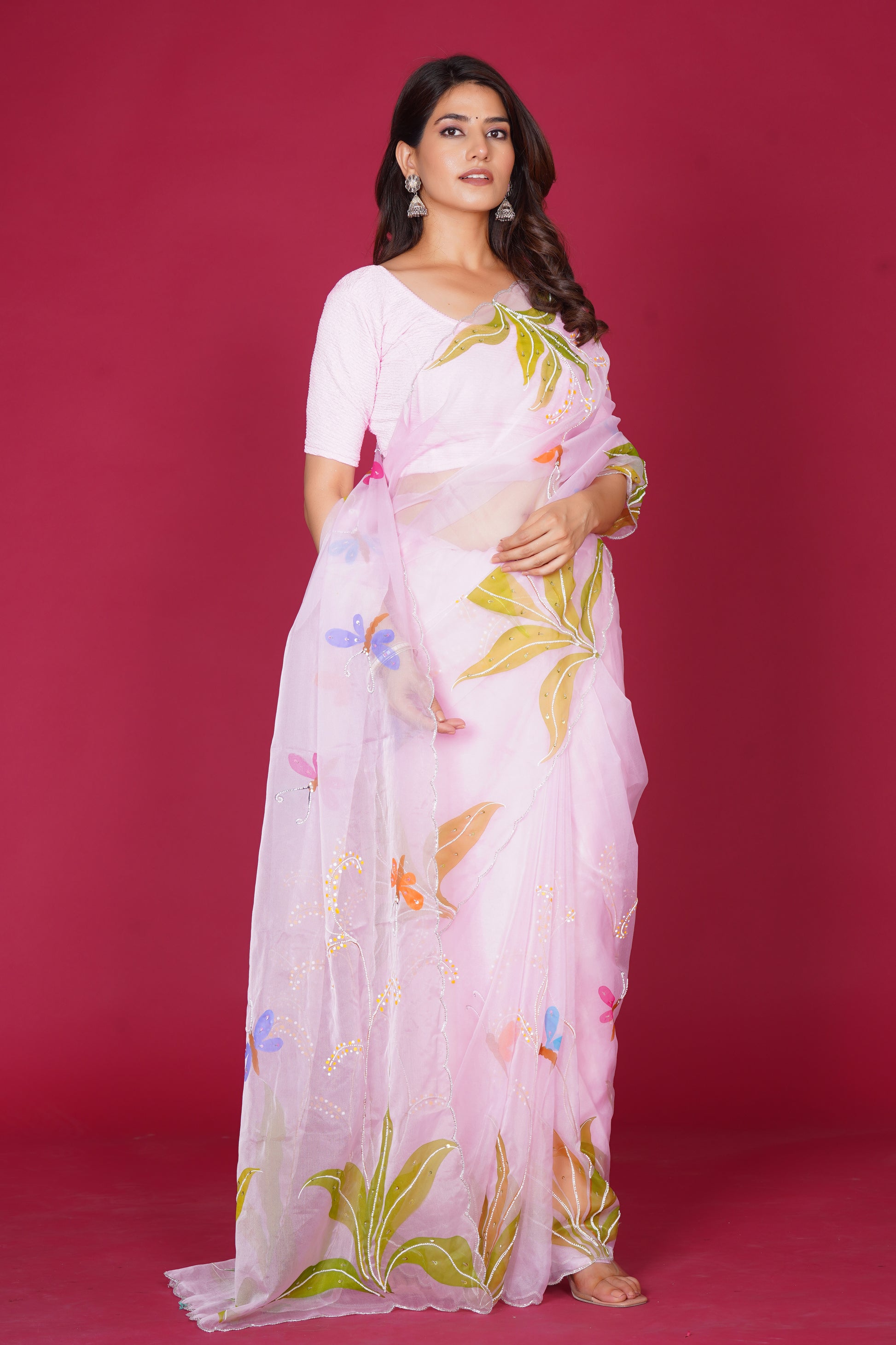 Crafted in a lightweight, airy fabric, Basant sarees feature handcrafted floral motifs in vibrant hues, bringing together artistry and comfort. Each piece is designed to flow gracefully, making it ideal for festive gatherings, weddings, and contemporary celebrations.